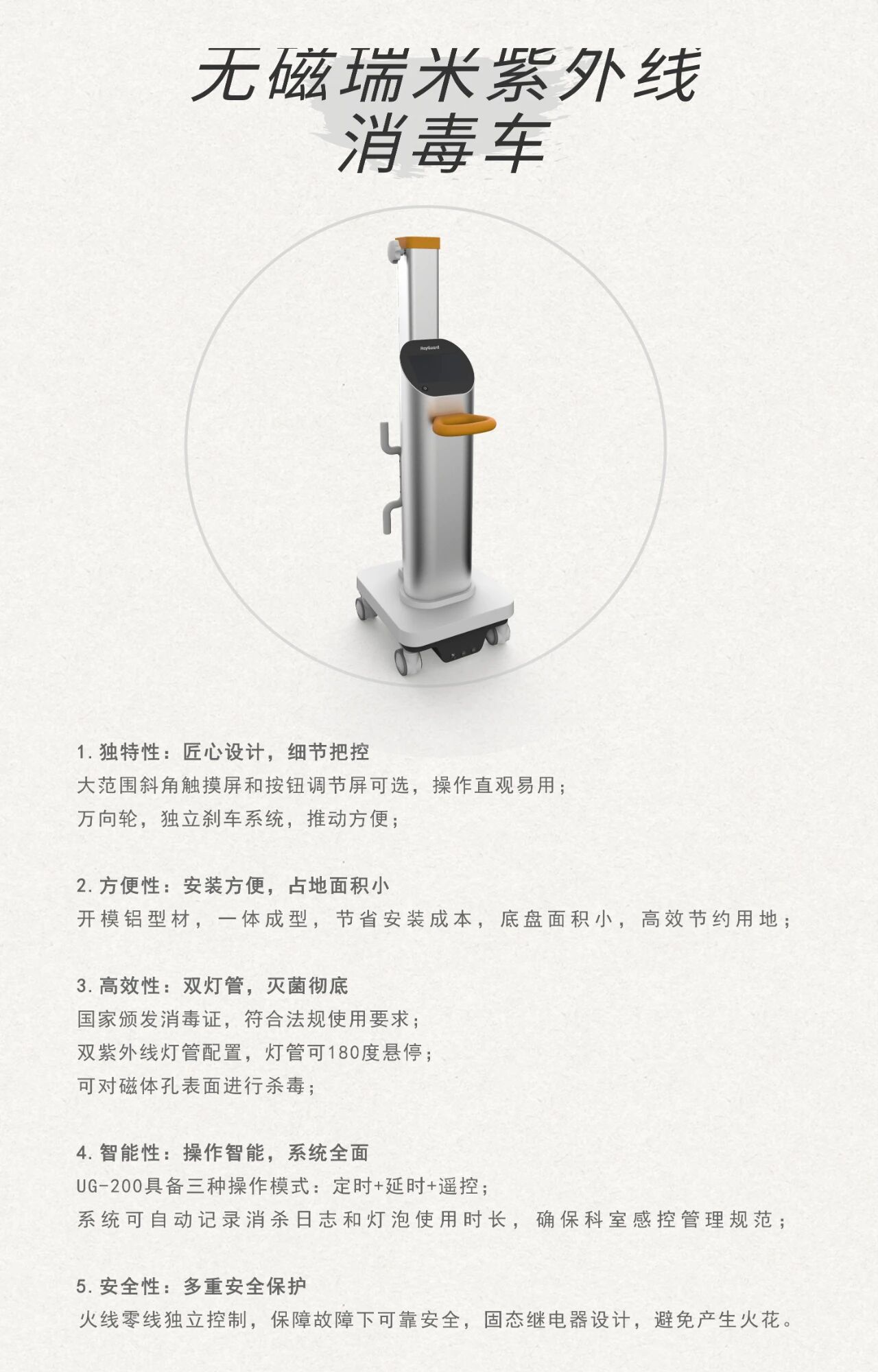 無(wú)磁瑞米紫外線消毒車是首批具有消毒產(chǎn)品生產(chǎn)企業(yè)衛(wèi)生許可證的瑞格泰科研發(fā)制造,與傳統(tǒng)消毒方法相比更加環(huán)??煽?。